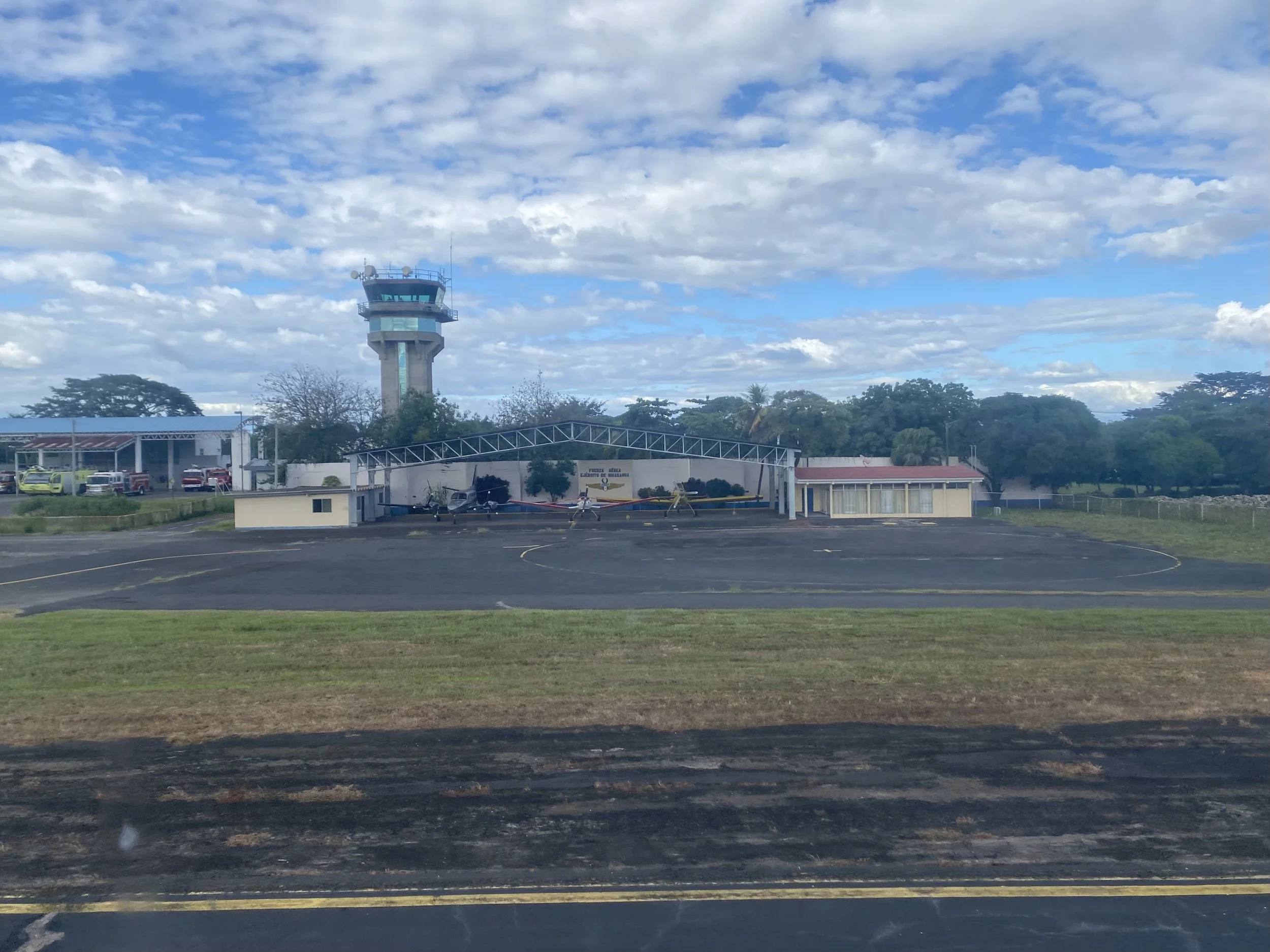 Before these two Central America trips, I had only been to Mexico and Canada and (like I alluded to above), these countries don't 'feel' much different than America, maybe only that in the former, everything is in Spanish. In terms of topography and temperature, there are few differences other than some rather tall mountains. Mexico just kind of feels like California or Arizona. Canada, well, feels like Michigan. But even before I had set foot on the tarmac in Nicaragua, it felt different. We were DEEP in Central America and if it didn't feel different, that would have been weird. On approach into Manugua, we flew by several ~active~ volcanoes and an island in the giant Lake Managua which I later found out was named 'Momotombito' after the volcano right next to it, Momotombo. Fun. Even more fun was them not erupting, although Masaya (which is south of Managua and we could see it as we descended) was smoking. The airport (an international one at that) felt like something out of a cartel hiest movie. It was nestled in trees that resembled a jungle and sat to the east of the capital city in a fairly sparse part of town. Truthfully, the runway surface itself could have used some cartel bucks.